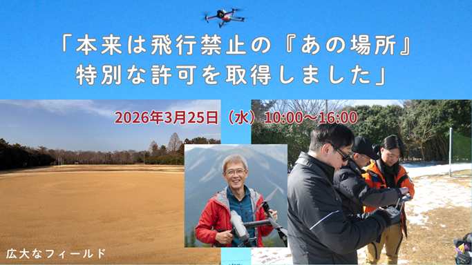 開催場所は、管理事務所との直接協議の末、本セミナーの趣旨に賛同いただき、 特別に飛行許可を確保したさいたま市内の広大なエリア。
